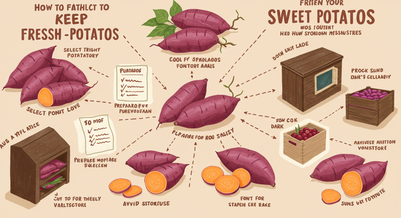 고구마를 오래 보관하는 핵심은 바로 고구마가 가장 좋아하는 환경을 만들어주는 거예요. 딱 세 가지만 기억하면 된답니다!