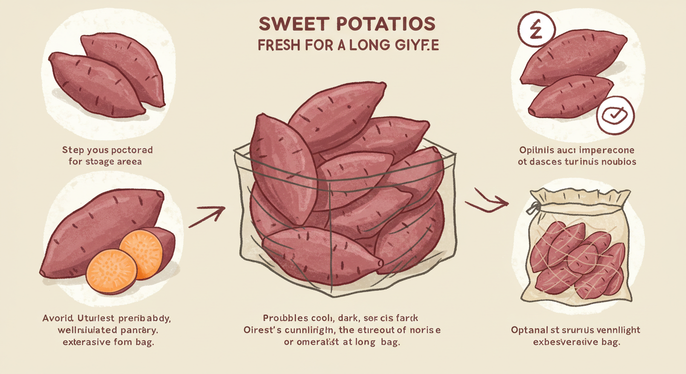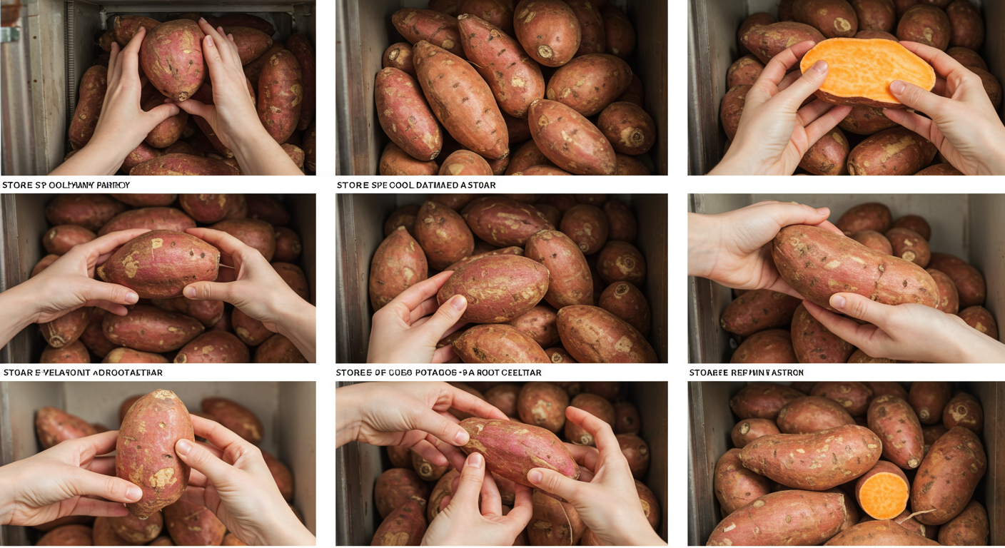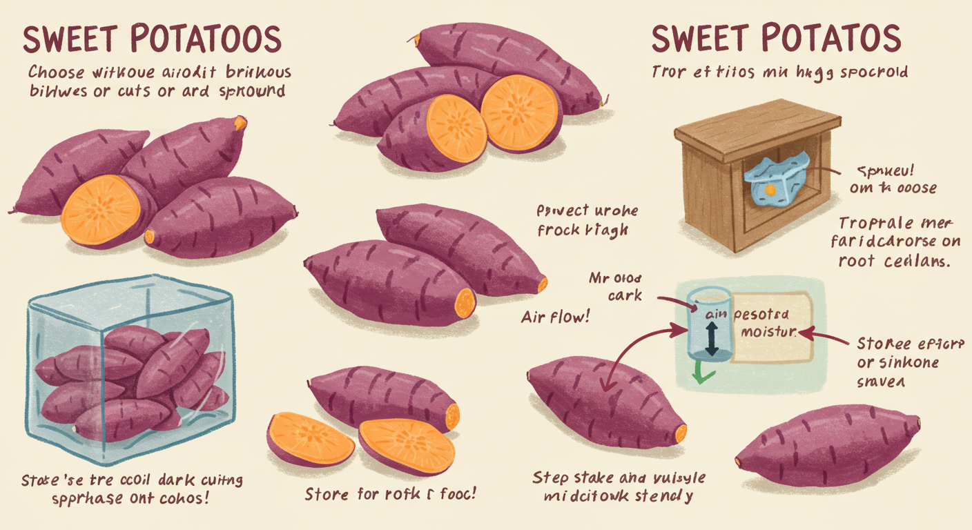 - 3. 충분한 통풍: 고구마 사이사이에 공기가 잘 통해야 습기가 차지 않고 신선도를 유지할 수 있어요. 밀폐된 공간은 고구마에게 독이랍니다.