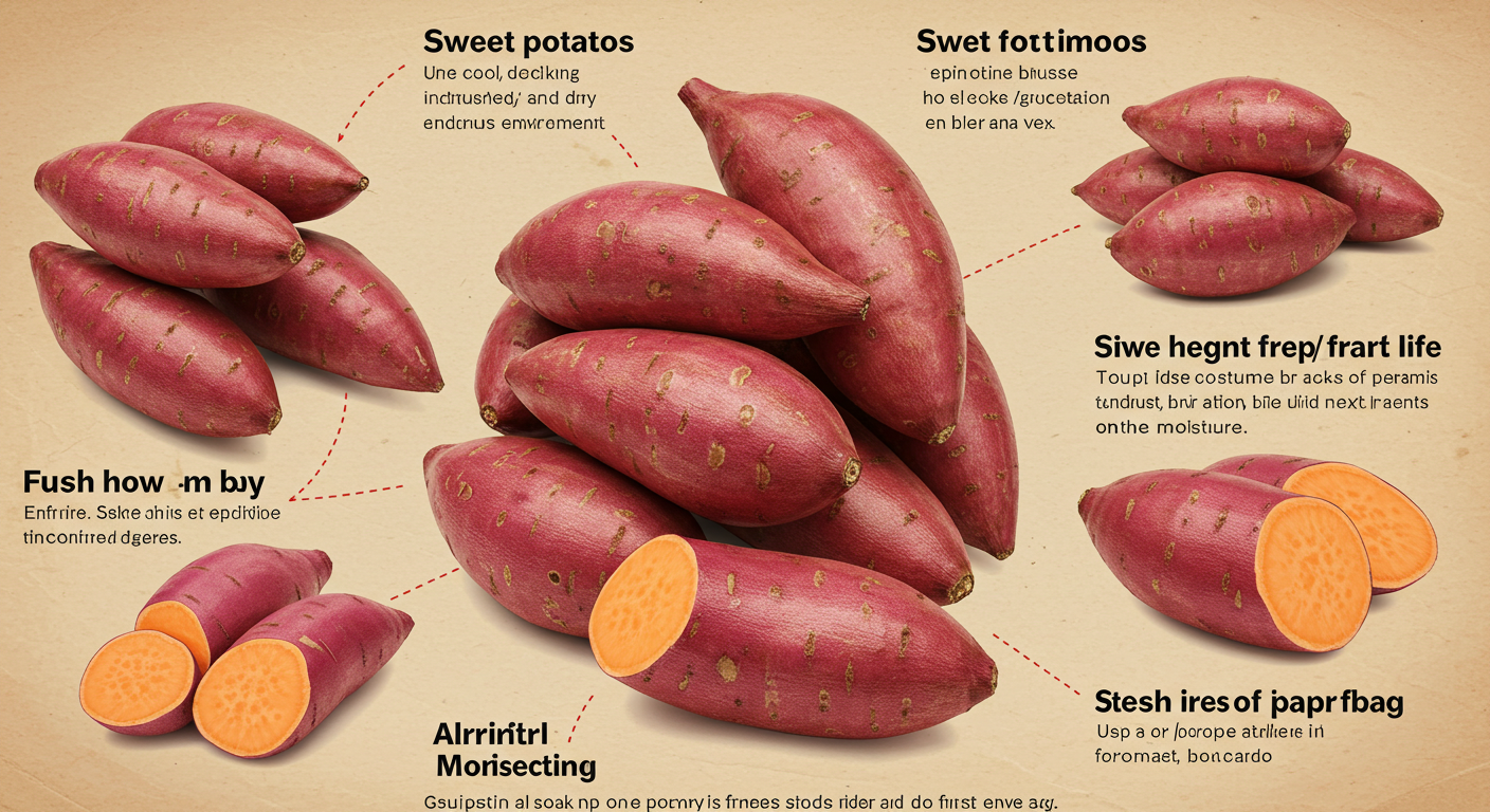 - 2. 습도 조절 (높지 않게!): 고구마는 습기에 매우 취약해요. 습기가 많으면 곰팡이가 생기거나 썩기 시작하죠. 건조한 환경을 유지하는 것이 생명이에요.