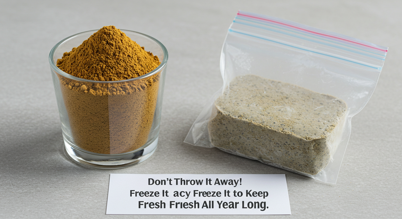들깨 가루를 사 오자마자, 한 번 쓸 만큼씩만 소분하는 것이 가장 중요해요. 큰 통에 넣어두면 매번 열고 닫을 때마다 새로운 공기가 들어가 산패가 시작되거든요. 저는 작은 지퍼백이나 밀폐 용기에 1~2주 안에 쓸 분량씩 나누어 담고, 용기의 공기를 최대한 빼내서 밀봉해요. - 2단계: 냉동 보관이 정답입니다. 냉장고는 잠시만!