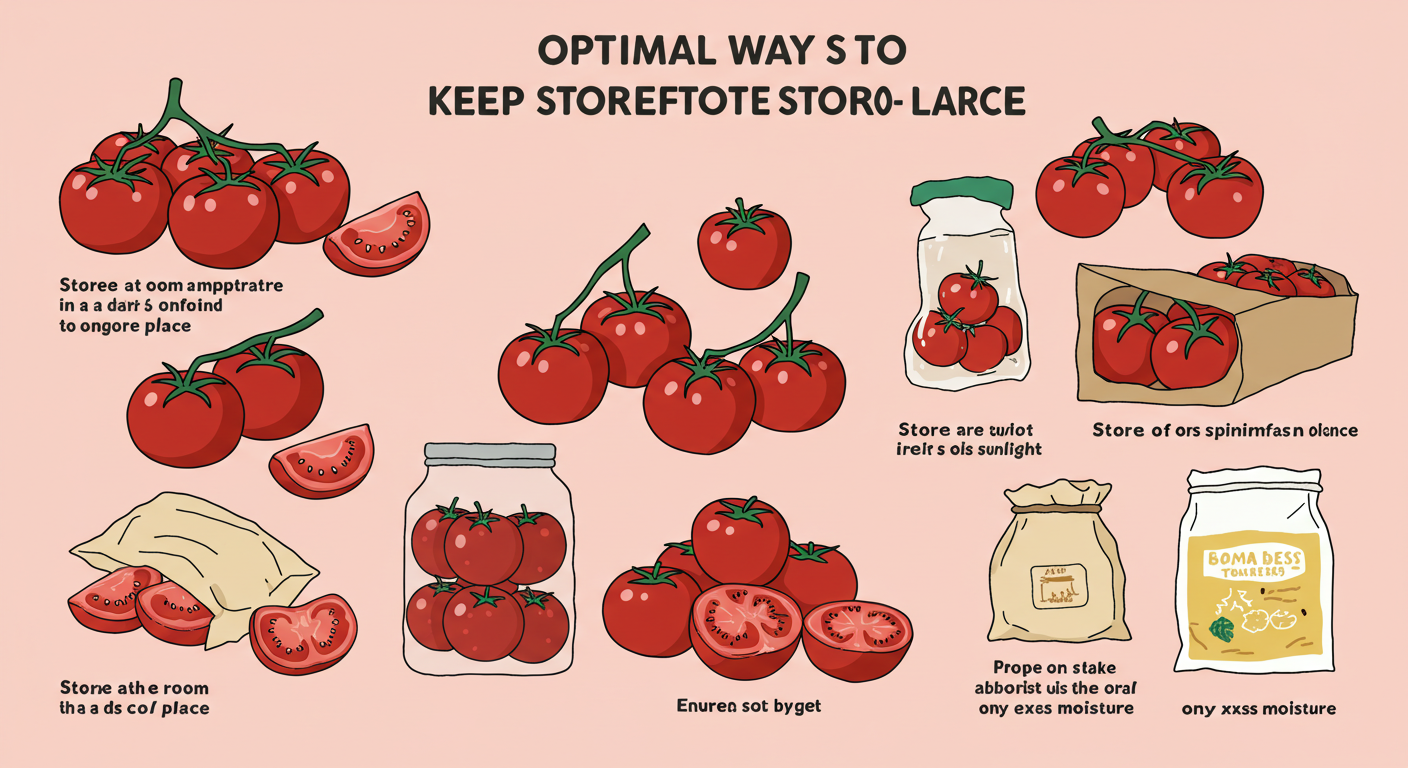 A: 👉 직사광선이 내리쬐는 베란다나 창가는 온도가 너무 높아 토마토가 빠르게 숙성되고 상할 수 있습니다. 서늘하고 그늘진 곳에 보관하는 것이 중요해요.
