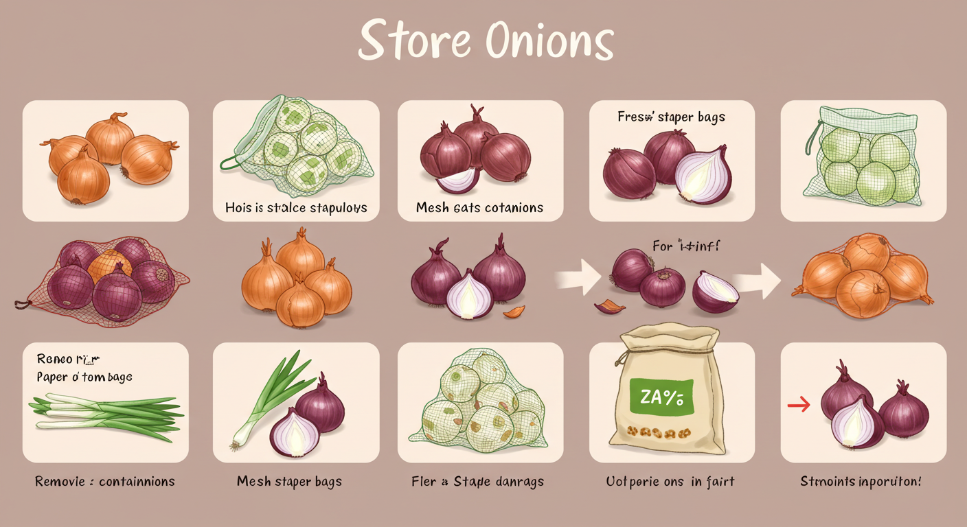 - ❌ 밀폐된 공간 보관: 양파는 습기에 약하고 통풍이 중요해요. 비닐봉투에 묶어두거나 밀폐된 상자에 가득 넣어두면 습기가 차서 금방 무르고 썩기 쉽습니다. 반드시 통풍이 잘 되게 해주세요.