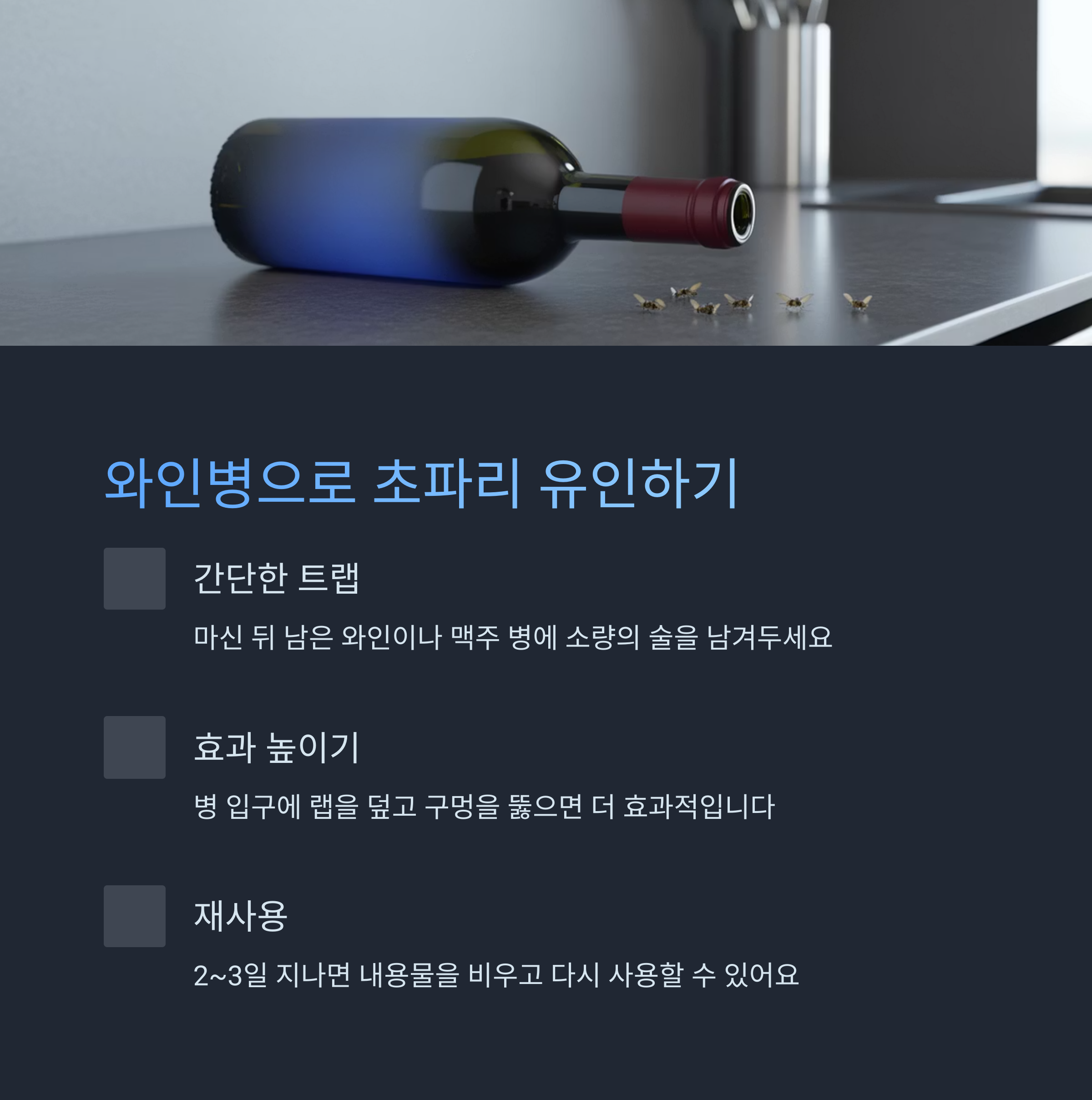 초파리 유인과 제거를 동시에 할 수 있는 대표적인 방법입니다.