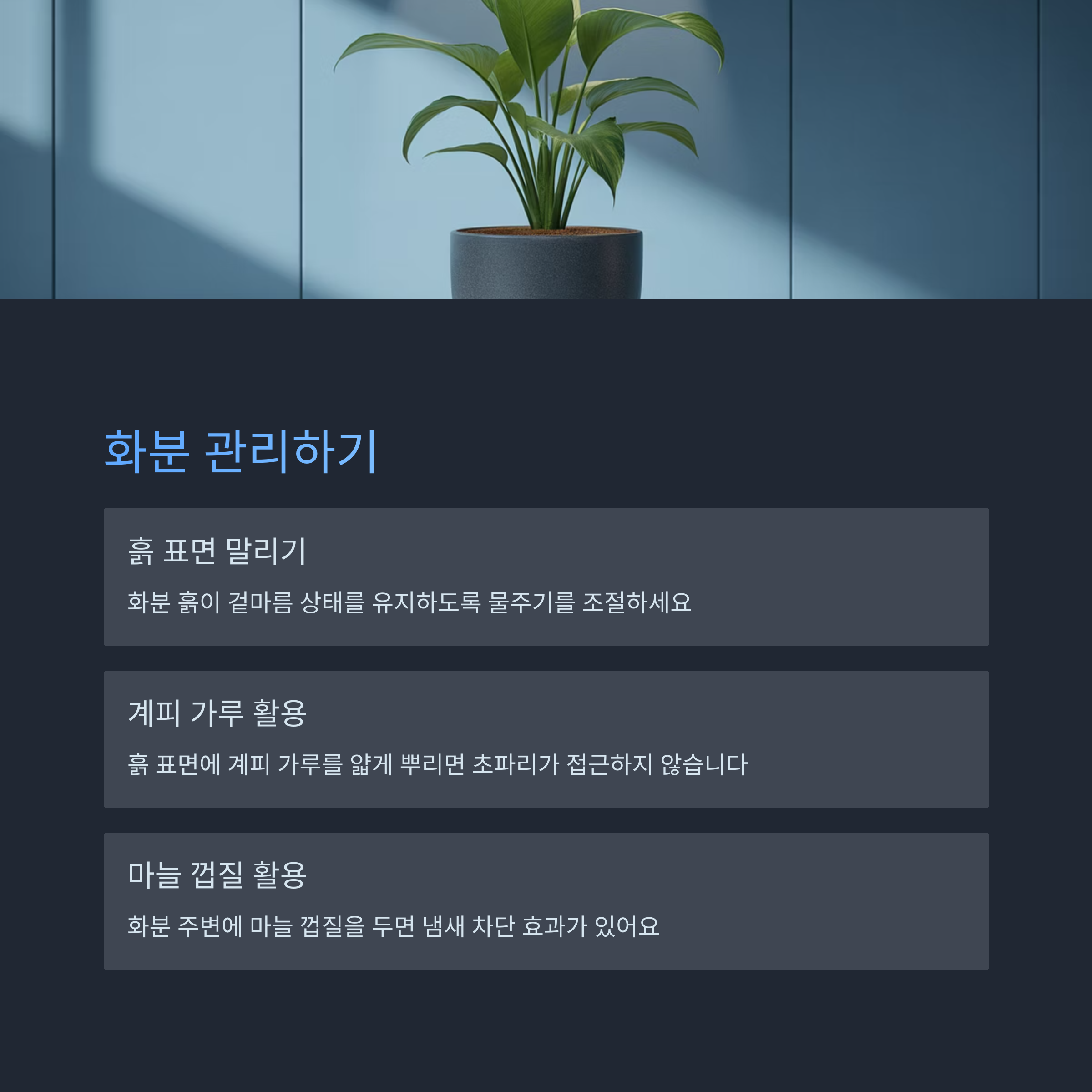 화분 속 습한 흙도 초파리에게 좋은 번식처가 됩니다.