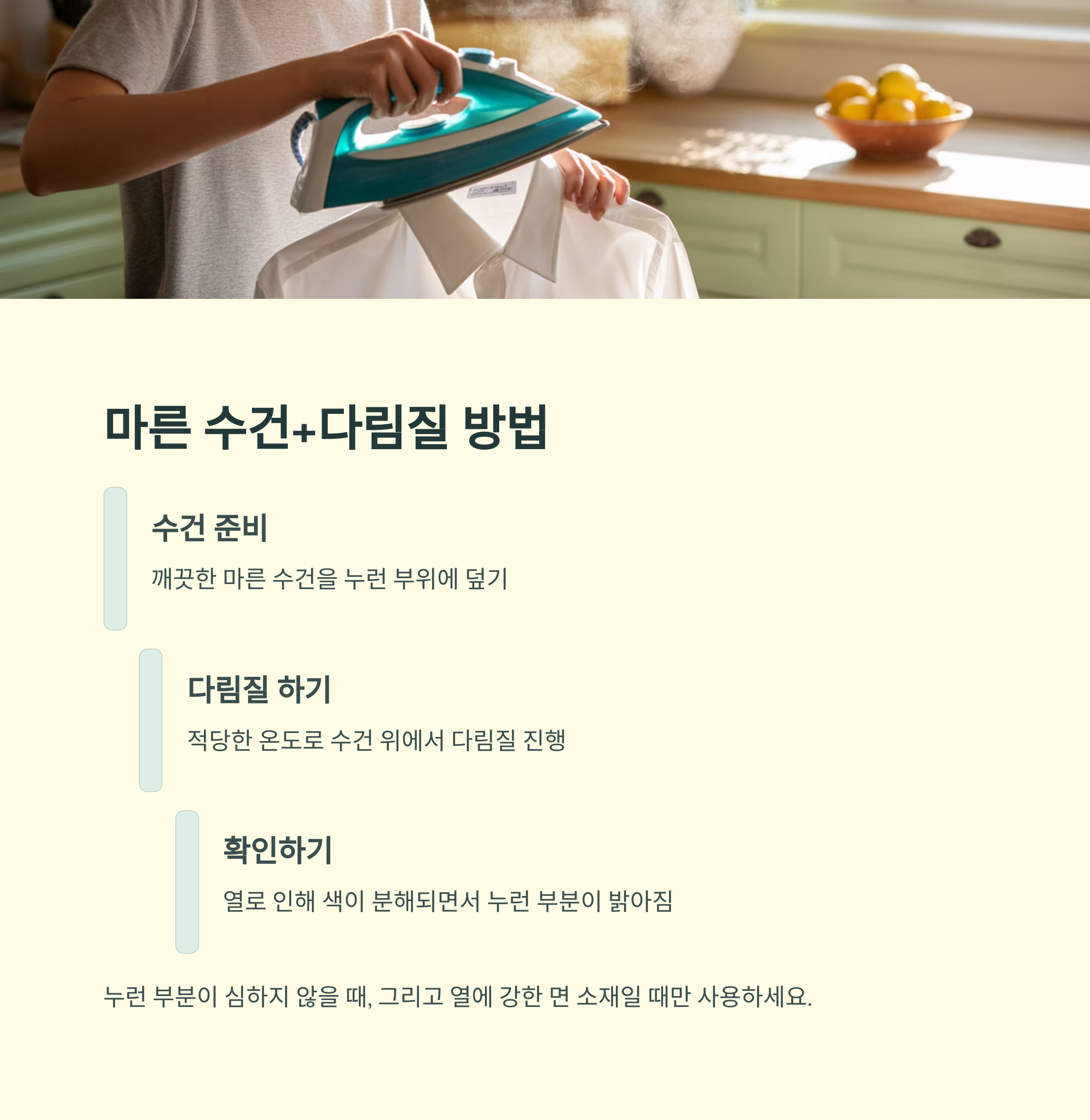 마른 수건+다림질, 열을 이용한 즉각적인 제거법